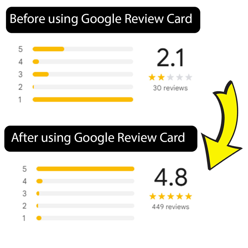 انقر أو امسح بطاقتك على أي هاتف لفتح صفحة تقييمات جوجل فورًا. يمكن للعملاء ترك تقييم 5 نجوم في ثوانٍ دون الحاجة إلى تطبيق أو إعداد. كل تقييم يعزز ظهورك، ويبني الثقة، ويساعد عملك على النمو بشكل أسرع.